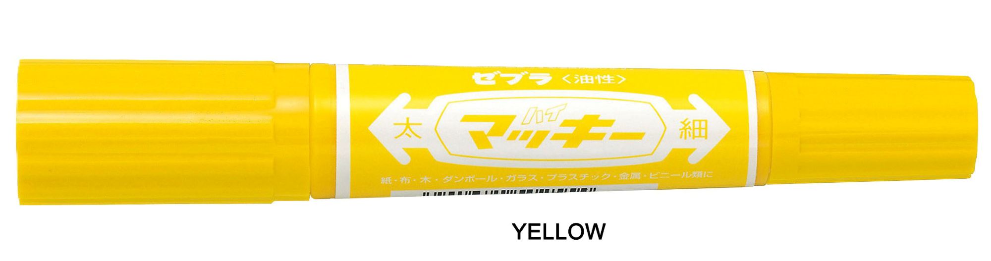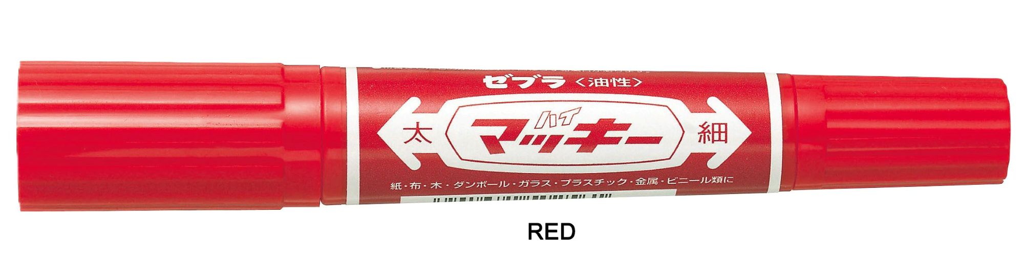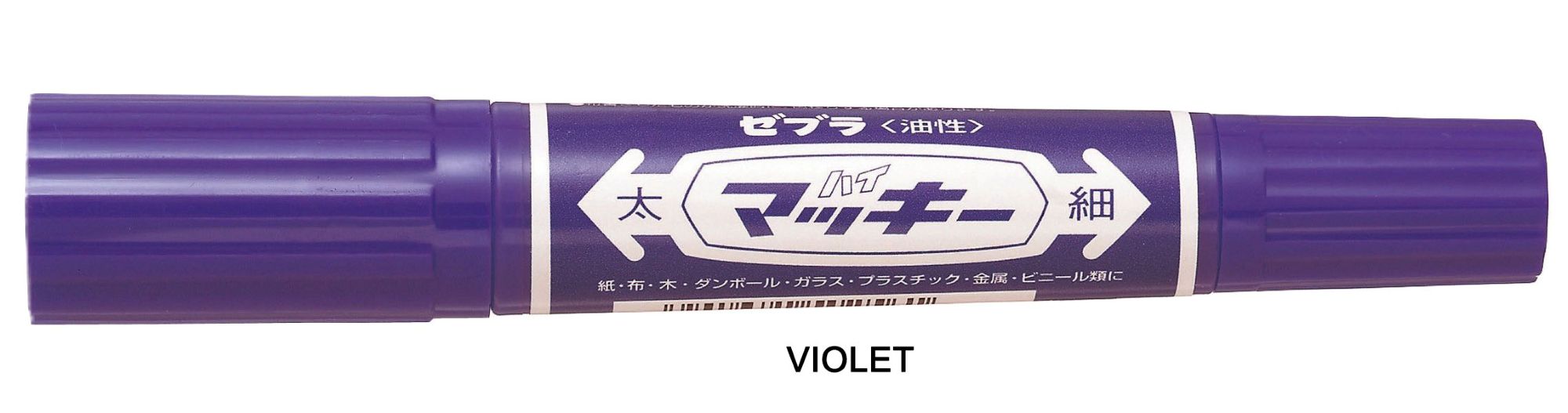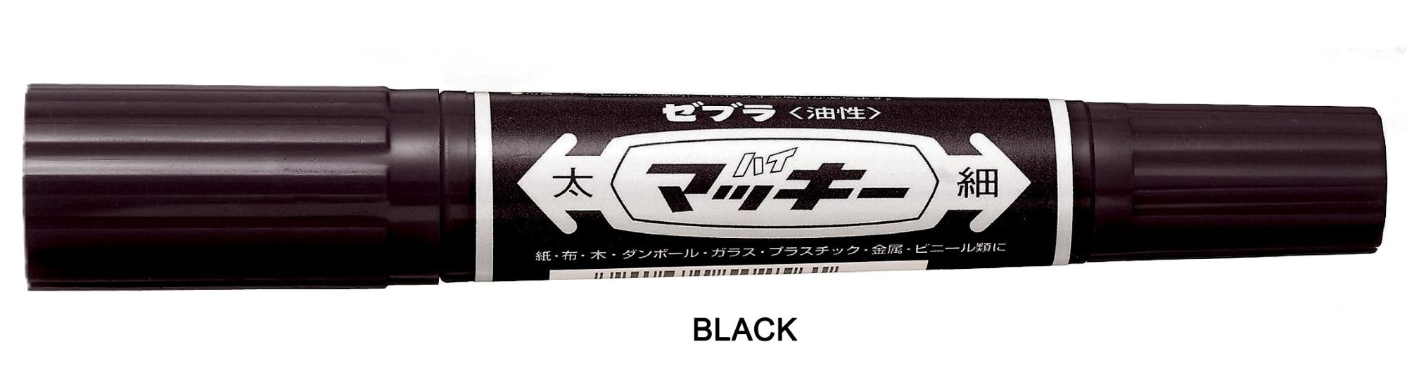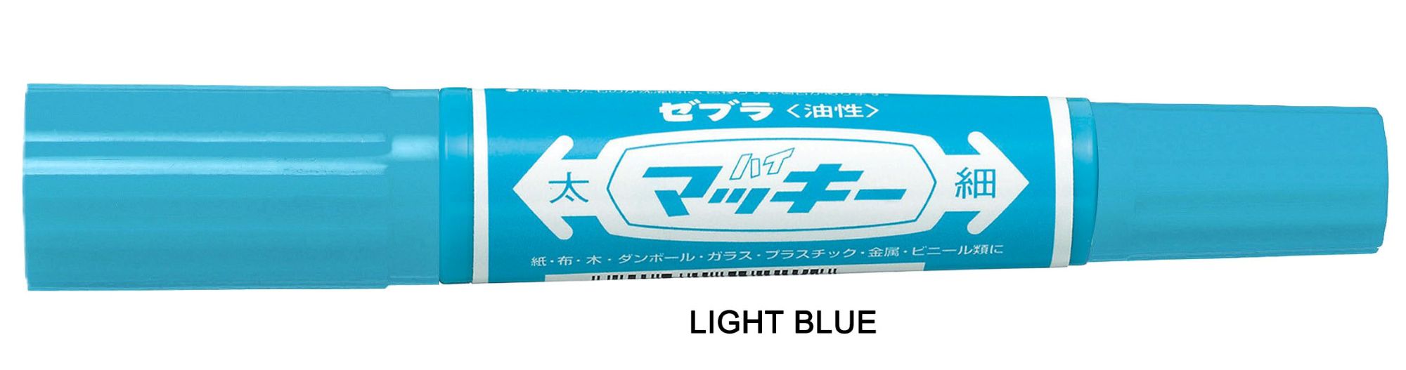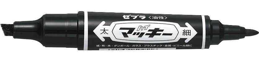 The Zebra Hi-Mckee is a permanent marker known for its twin-tipped design and oil-based, quick-drying, water-resistant ink. It features both a bold chisel tip (6.0 mm) and a fine bullet tip (1.0-1.3 mm). This allows for versatile use, from creating thick, bold lines to fine details. It's suitable for a wide range of surfaces, including paper, cardboard, plastic, metal, wood, glass, and fabric.