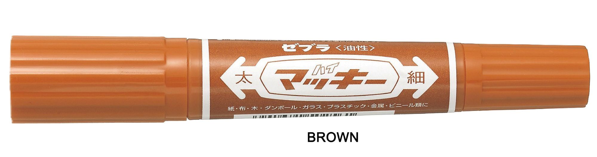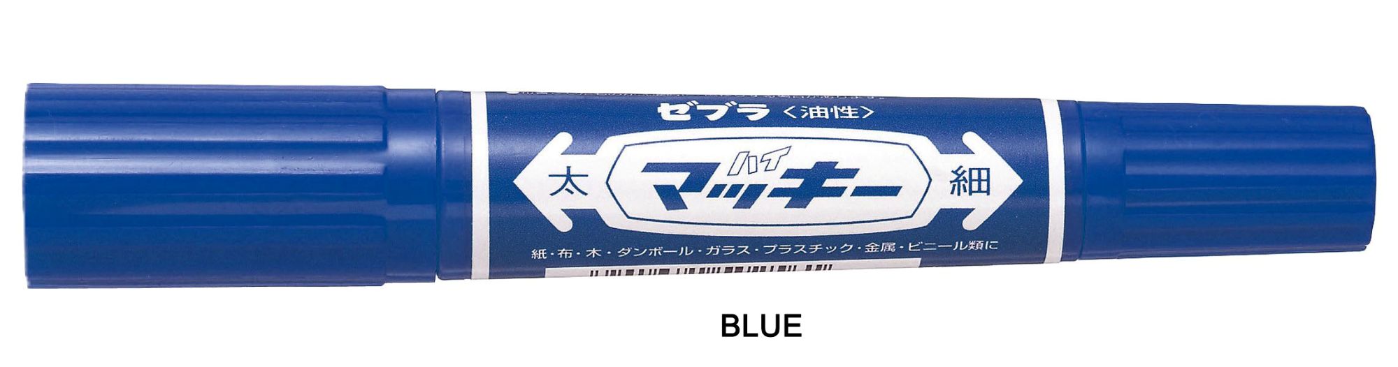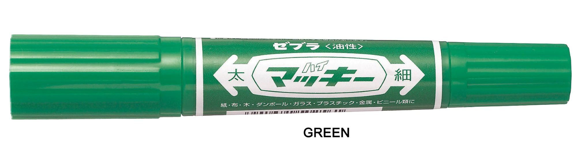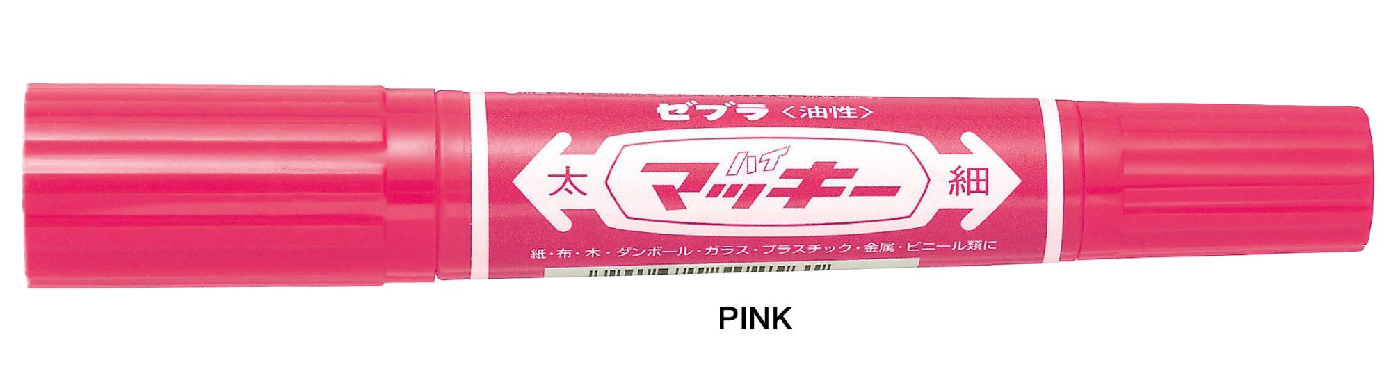 The Zebra Hi-Mckee is a permanent marker known for its twin-tipped design and oil-based, quick-drying, water-resistant ink. It features both a bold chisel tip (6.0 mm) and a fine bullet tip (1.0-1.3 mm). This allows for versatile use, from creating thick, bold lines to fine details. It's suitable for a wide range of surfaces, including paper, cardboard, plastic, metal, wood, glass, and fabric.